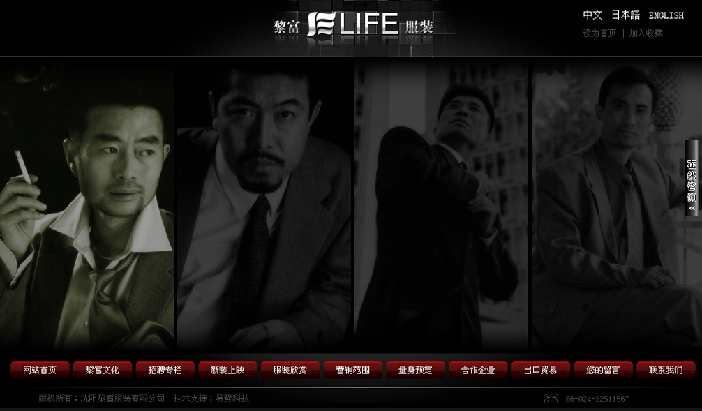 网站简介: 沈阳黎富服装有限公司网站是多种语言网站,网站包括在线咨询、动态图片展示等功能。